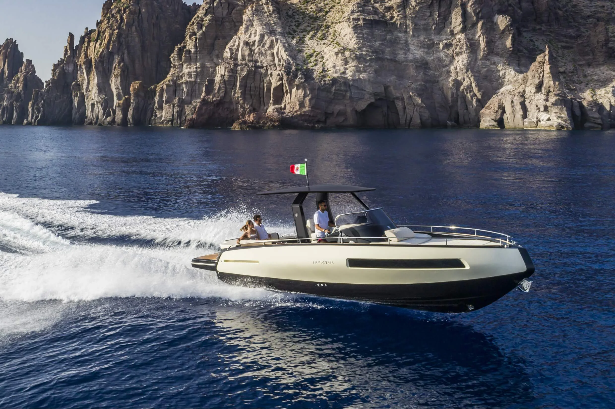 Plongez dans l’élégance et la puissance avec l’INVICTUS GT280, day boat avec cabine 2 places fusionnant design italien raffiné et performance. De la proue à la poupe, chaque détail incarne le luxe et l’innovation, offrant une expérience de navigation unique.