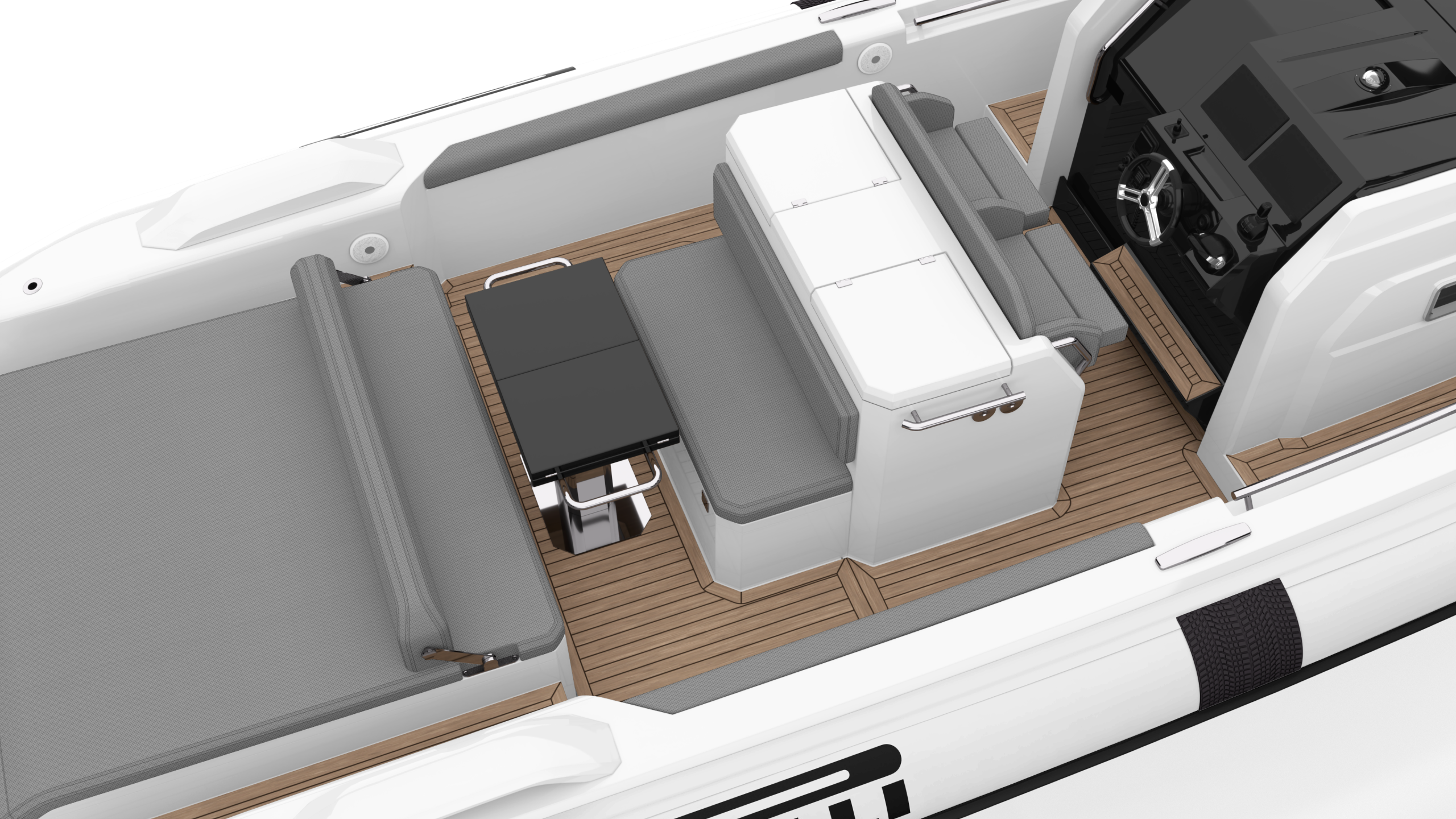 - Étrave en composite (GRP) avec marche intégrée